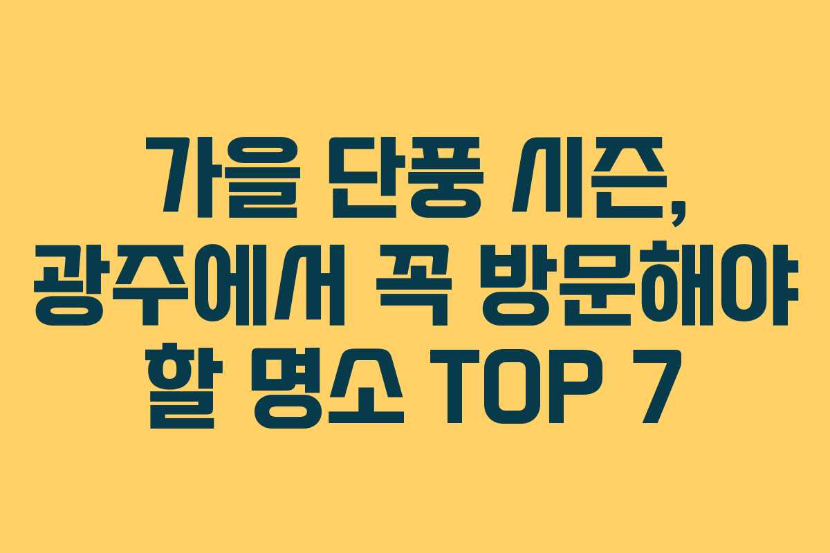 가을은 단풍이 물드는 아름다운 계절입니다. 특히 광주광역시는 풍부한 자연과 역사적인 명소가 어우러져 있어 가을에 방문하기에 최적의 장소입니다. 이번 글에서는 광주에서 단풍을 만끽할 수 있는 대표 명소 7곳을 소개합니다.
