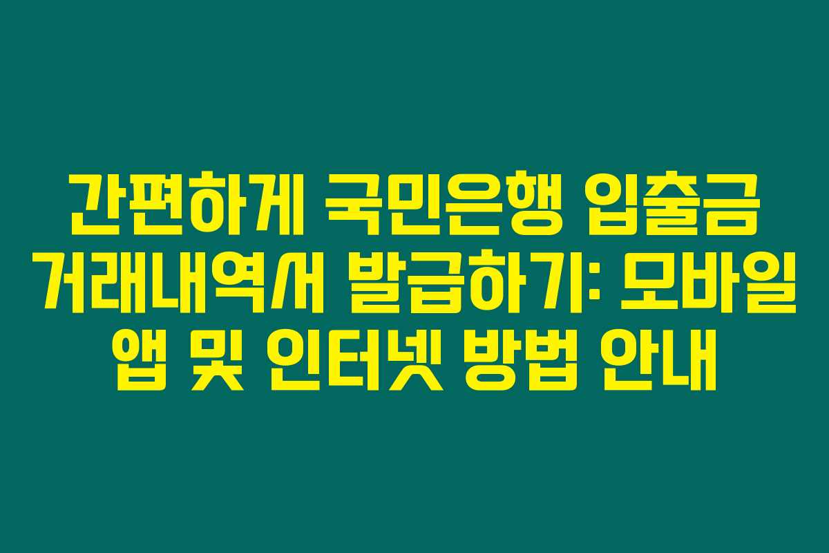 제가 알아본 바로는, 국민은행의 입출금 거래내역서를 발급받는 방법이 생각보다 간단하고 편리하답니다. 많은 분들이 은행을 직접 방문하지 않고도 모바일 뱅킹 앱이나 인터넷을 통해 쉽게 거래내역서를 발급받을 수 있다는 것을 잘 모르더라고요. 아래를 읽어보시면 그 방법에 대해 자세히 알아보실 수 있습니다.