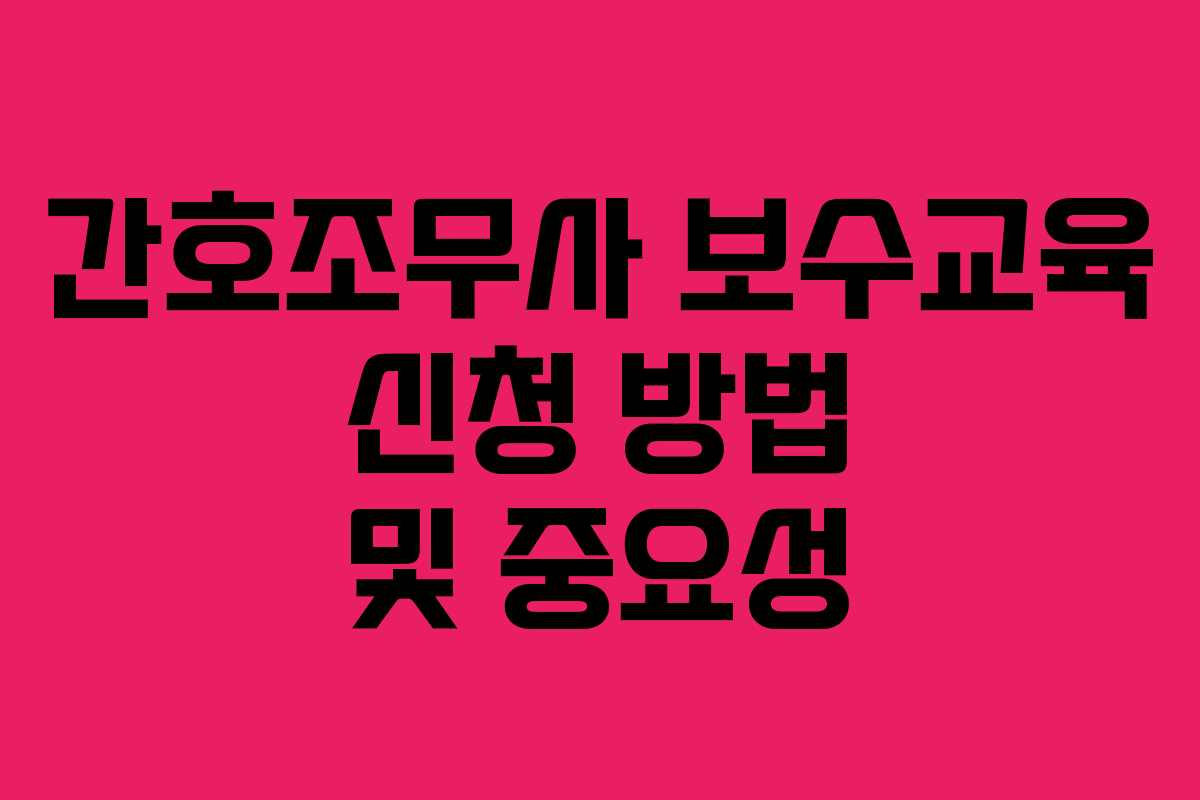 간호조무사는 자격 유지를 위해 필수적으로 보수교육을 이수해야 합니다. 본 글에서는 간호조무사 보수교육의 필요성과 신청 절차, 유의사항에 대해 상세히 설명하겠습니다.