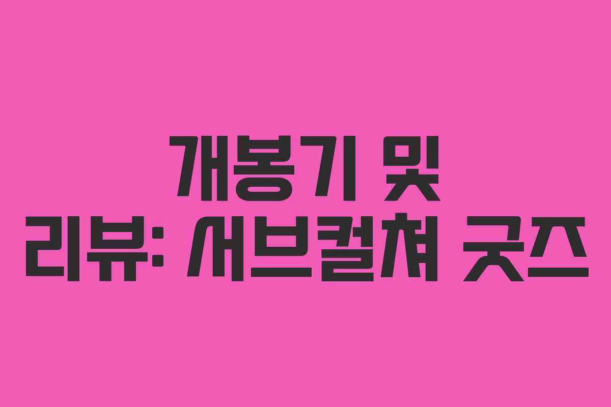 서브컬쳐 굿즈는 애니메이션, 만화, 게임 등 다양한 장르의 팬들에게 큰 사랑을 받고 있습니다. 이번 글에서는 여러 가지 서브컬쳐 굿즈에 대한 개봉기와 리뷰를 통해 어떤 제품들이 있는지, 특징과 장점을 살펴보겠습니다.
