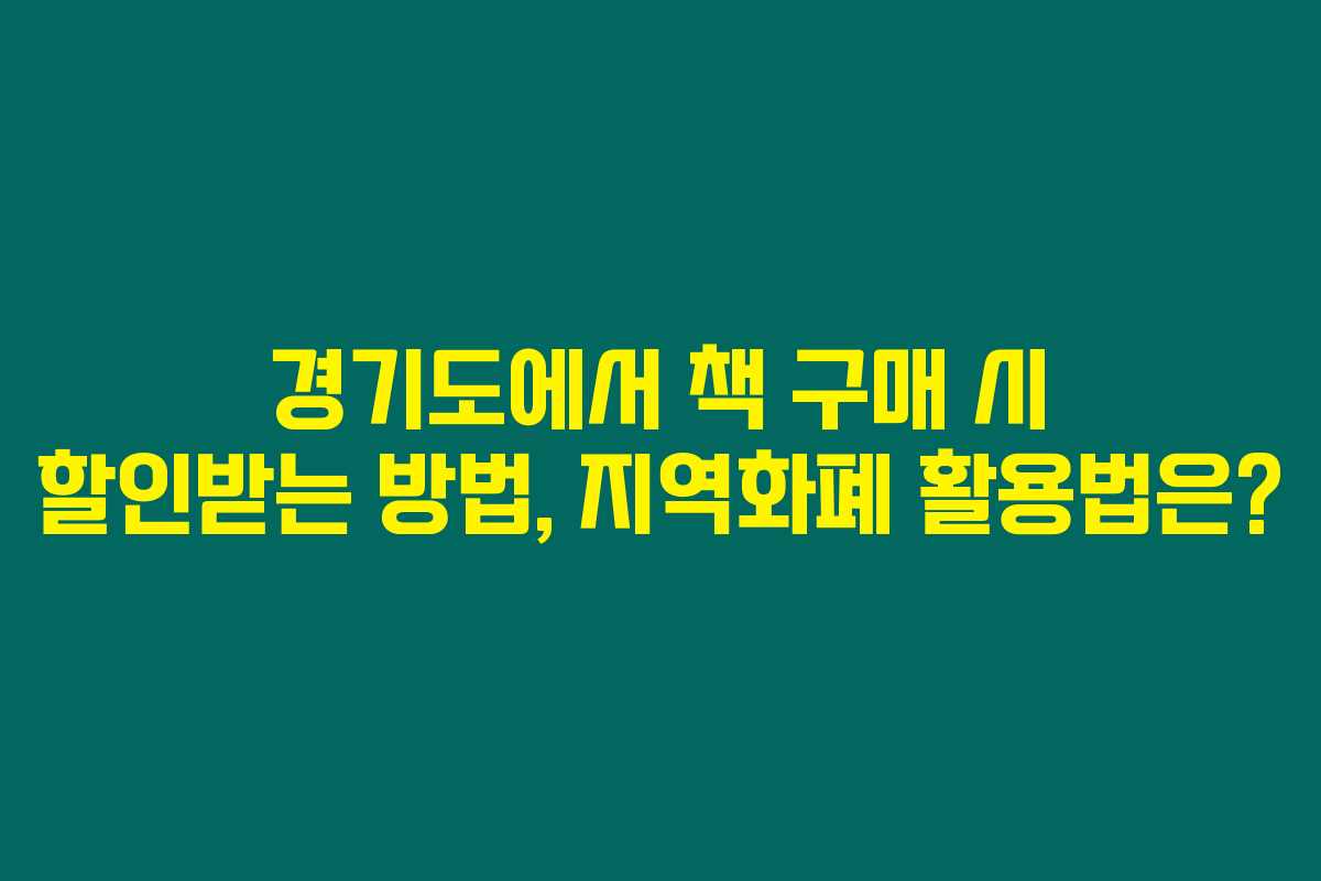혜택을 받을 수 있는 방법이 정말 많답니다. 특히 지역화폐를 이용하면 더 큰 혜택을 누릴 수 있어요. 경기도에서 시행하고 있는 책 할인 지원 정책에 대해 자세히 알아보시고, 아래를 읽어보시면 실제로 어떻게 활용할 수 있는지 알아보세요.