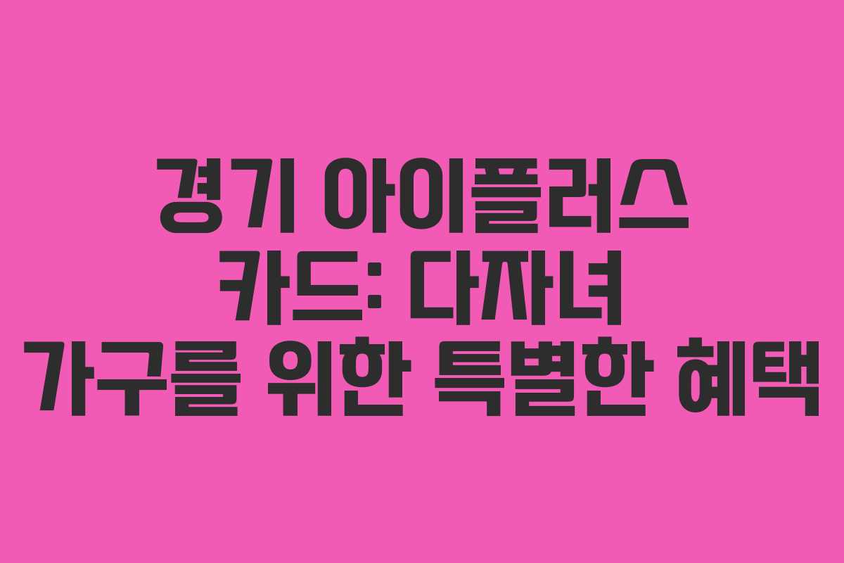 경기 아이플러스 카드(I-PLUS 카드)는 경기도에서 다자녀 가구의 경제적 부담을 덜기 위해 마련된 카드입니다. 이 카드는 출산, 양육, 교육비 등의 부담을 줄이고자 하는 취지로 개발되었습니다.