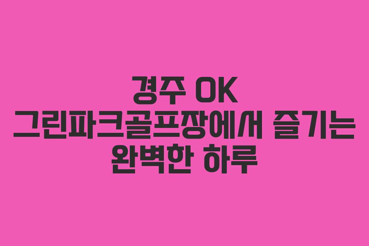 - 🤔 경주 OK 그린파크골프장 관련하여 진짜 궁금한 것들 (FAQ)