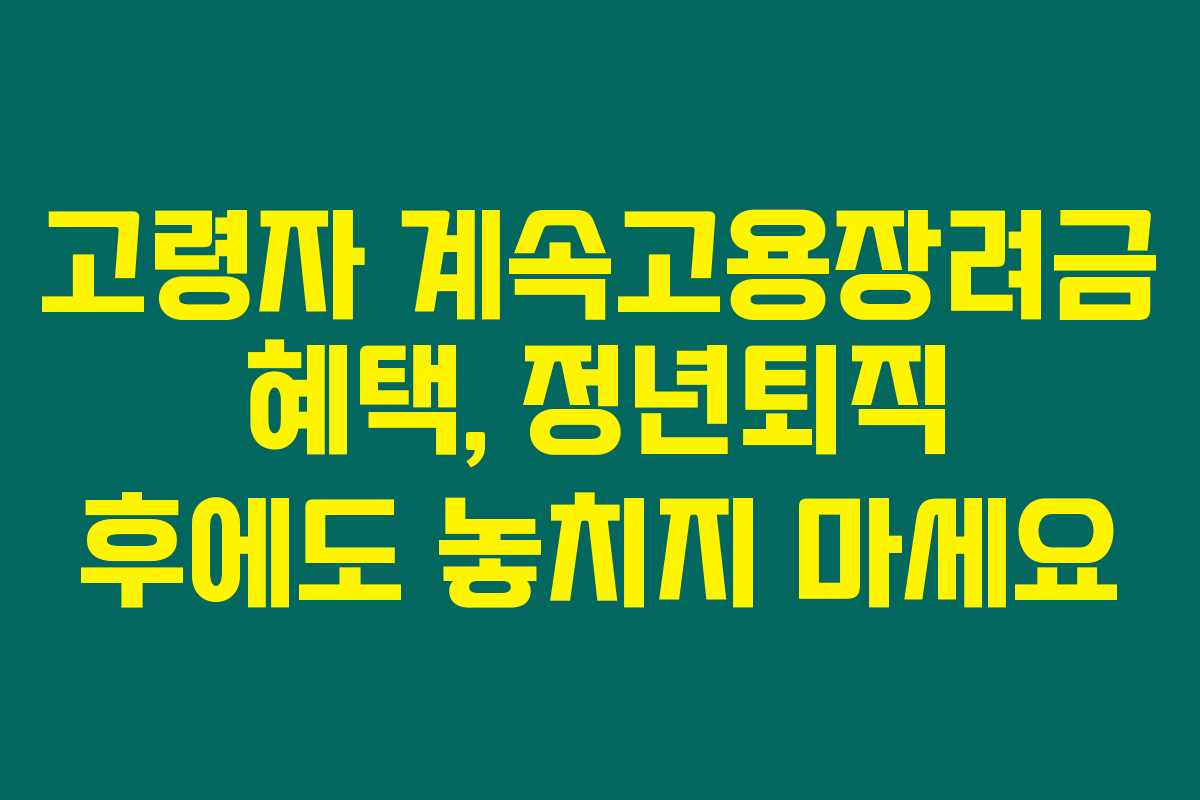 고령자 계속고용장려금은 사업주가 근로자를 정년퇴직 이후에도 계속해서 고용하면 지원금을 받는 제도예요. 고령자 계속고용장려금을 통해 월 30만 원을 지원받을 수 있는 이점이 있어요. 이 제도는 근로자와 고용주 모두에게 이득이 되는 시스템이랍니다!