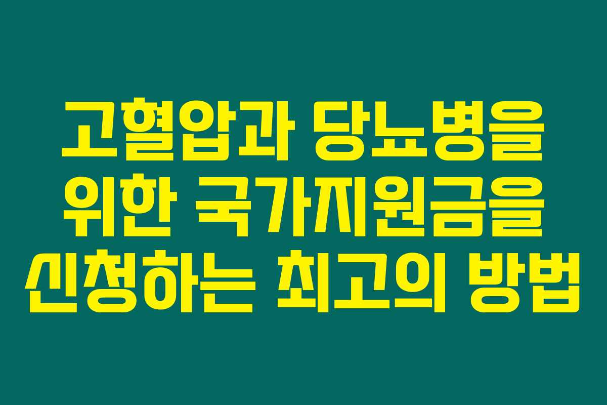 제가 직접 경험해본 결과로는 고혈압이나 당뇨병을 앓고 계신 분들에게 국가에서는 다양한 지원금을 제공하고 있습니다. 이러한 지원금은 환자분들이 건강 상태를 개선할 수 있도록 도와주는 데 큰 역할을 하죠. 아래를 읽어보시면 고혈압과 당뇨병에 대한 국가지원금 신청 절차와 혜택에 대해서 상세히 알아보실 수 있습니다.