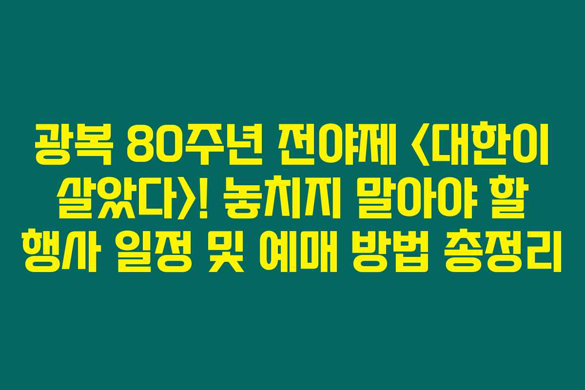 광복 80주년 전야제는 단순한 기념 행사가 아니라, 역사와 문화가 어우러지는 특별한 무대입니다. 과연 이 행사가 어떤 내용을 담고 제시하는지 알아볼까요?