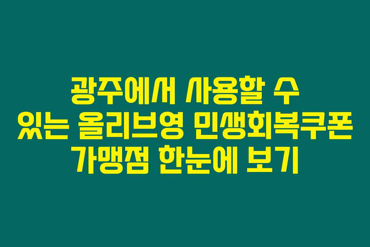 광주에서 민생회복쿠폰 사용을 고민하고 계신가요? 올리브영 가맹점에서 쿠폰을 쓸 수 있다는 사실 알고 계셨나요? 이 글에서 올리브영 가맹점을 찾는 방법과 함께 가장 최신 정보를 알아보세요. 지역 경제를 살리는 쿠폰 사용법이 궁금하시다면 아래를 읽어보시면 유용한 정보를 얻으실 수 있을 거에요.