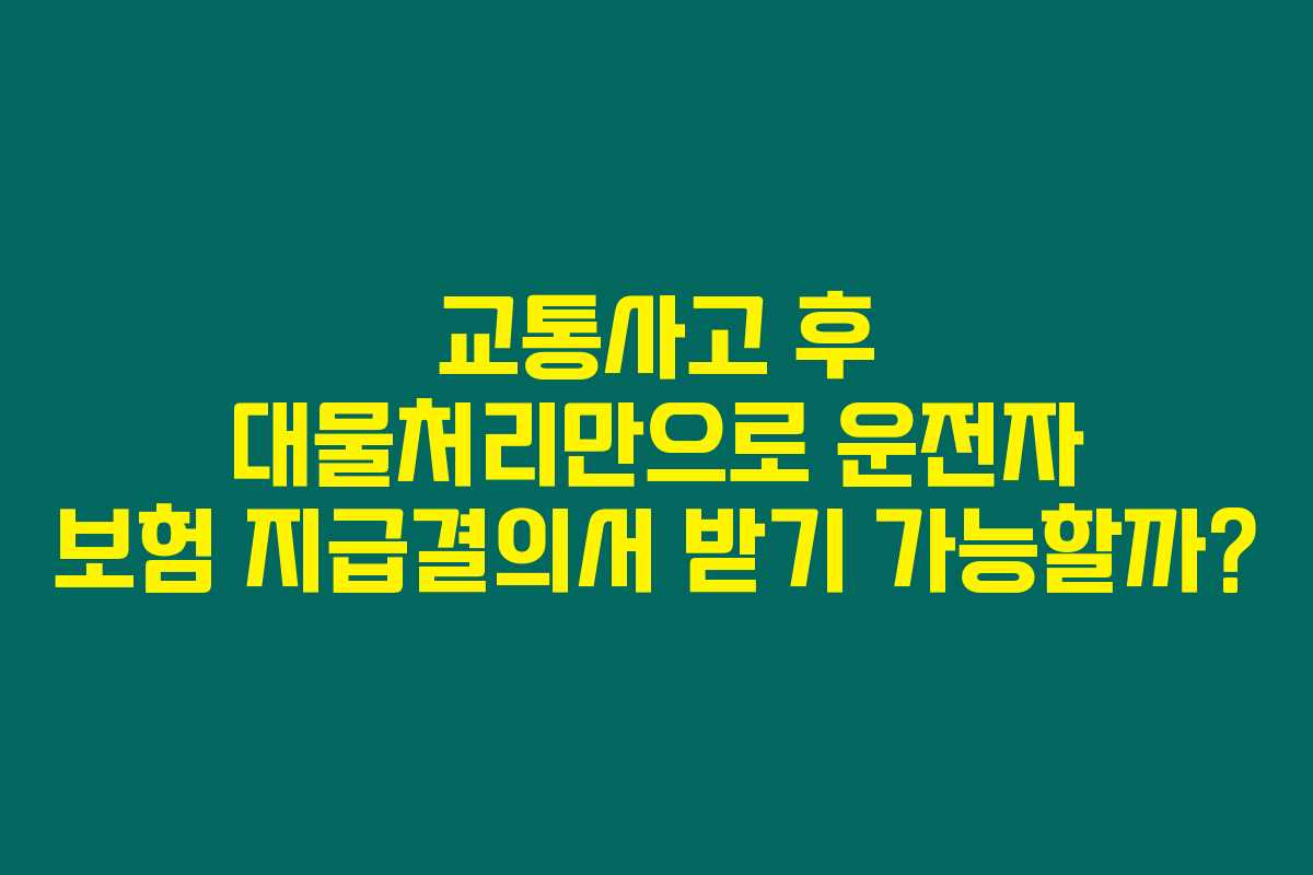 교통사고는 많은 운전자가 피하고 싶어하는 상황이지만, 불행히도 예기치 않게 사고에 연루되기도 하죠. 특히 대물 처리만 진행한 경우, 운전자 보험에서 지급결의서를 받을 수 있을지 고민하는 사람들이 많아요. 아래를 읽어보시면 궁금증이 해결되고, 실질적인 대응 방법을 알게 되실 거예요.