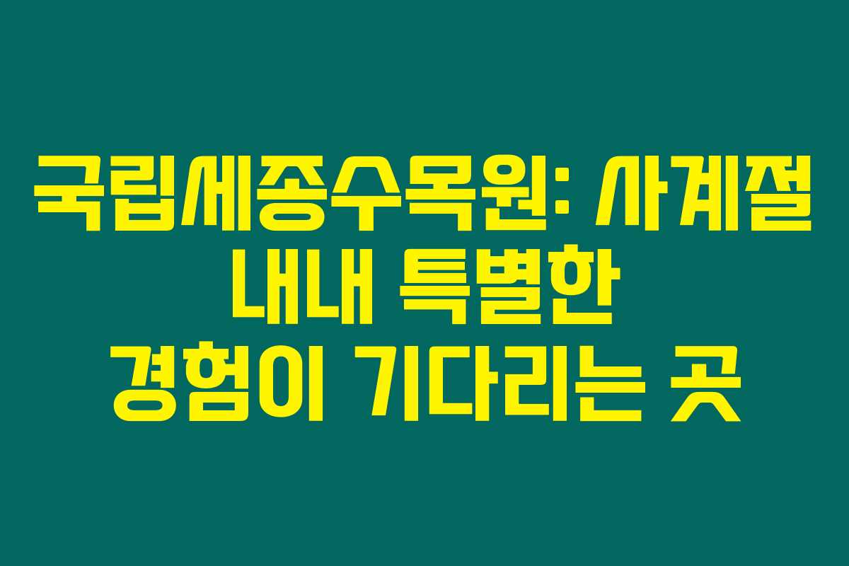 제가 직접 알아본 바로는 국립세종수목원은 사계절 내내 다양한 테마 정원과 식물들을 보면서 특별한 경험을 할 수 있는 곳입니다. 이 글에서는 국립세종수목원의 입장료, 예약 방법, 맛집 추천, 야간개장 정보 등을 총망라해서 정리해보았어요. 아래를 읽어보시면 꼭 필요한 정보들을 모두 확인할 수 있습니다.
