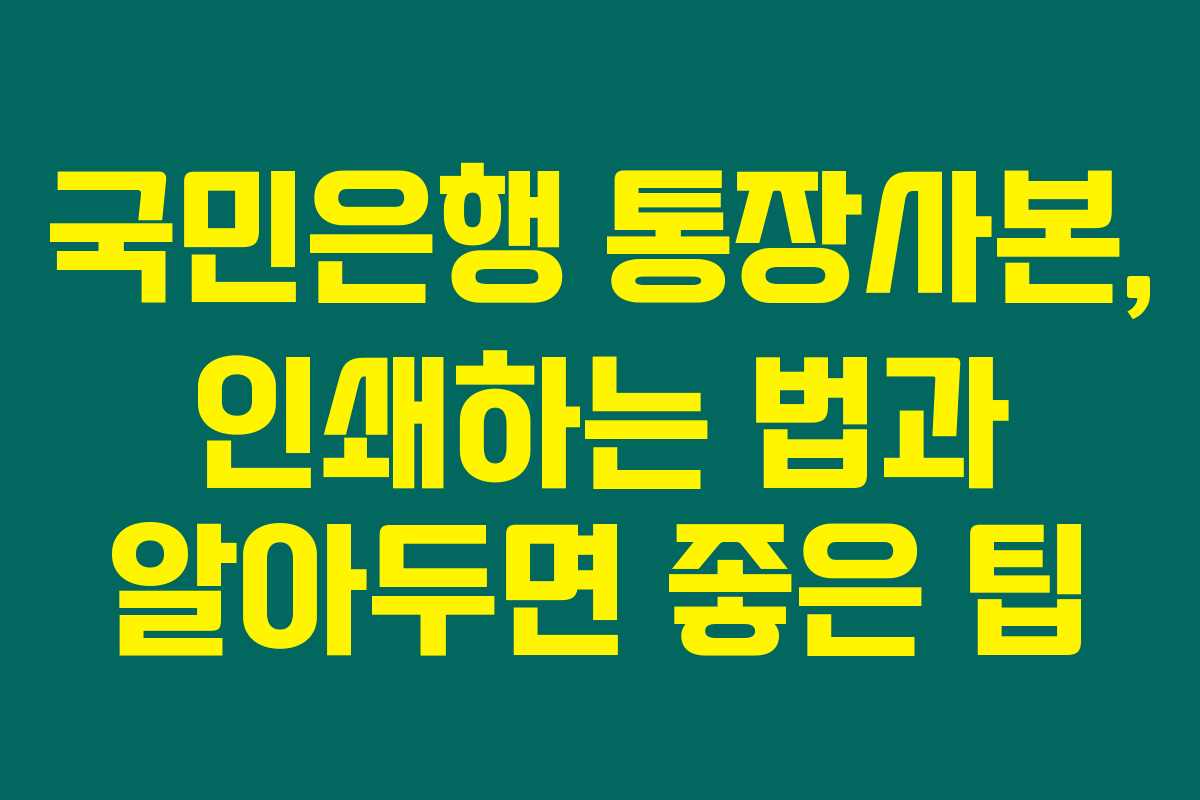 지금 돈을 입금받거나 금융 거래를 위해 통장사본이 필요하신가요? 국민은행 통장사본 출력 방법을 쉽게 안내해 드리겠습니다. 아래를 읽어보시면 컴퓨터와 프린터만 있으면 집에서도 간편하게 통장사본을 인쇄할 수 있는 방법을 알 수 있으니 놓치지 마세요!