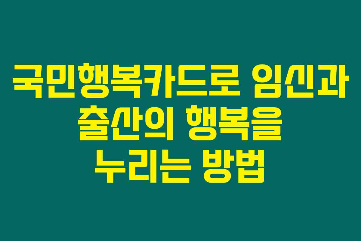 국민행복카드는 임신, 출산, 육아를 도와주는 필수적인 카드라고 할 수 있어요. 정부에서 제공하는 혜택이 이 카드에 담기기 때문에, 임신 사실을 확인하고 나서 바로 신청하는 것이 좋아요. 제가 직접 확인해본 결과, 이 카드를 통해 받을 수 있는 혜택이 정말 다양하더라고요.