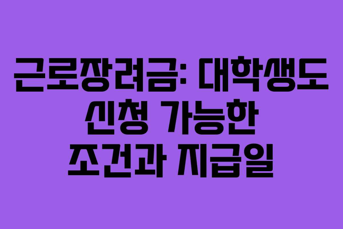 대학생도 근로장려금을 신청할 수 있지만, 몇 가지 조건을 충족해야 합니다. 신청자는 가구원, 소득, 재산 요건을 모두 충족해야 하며, 1세대당 1명에게만 지급됩니다. 부모와 함께 거주하는 경우에는 부모의 재산이 포함되어 신청이 어려울 수 있습니다.