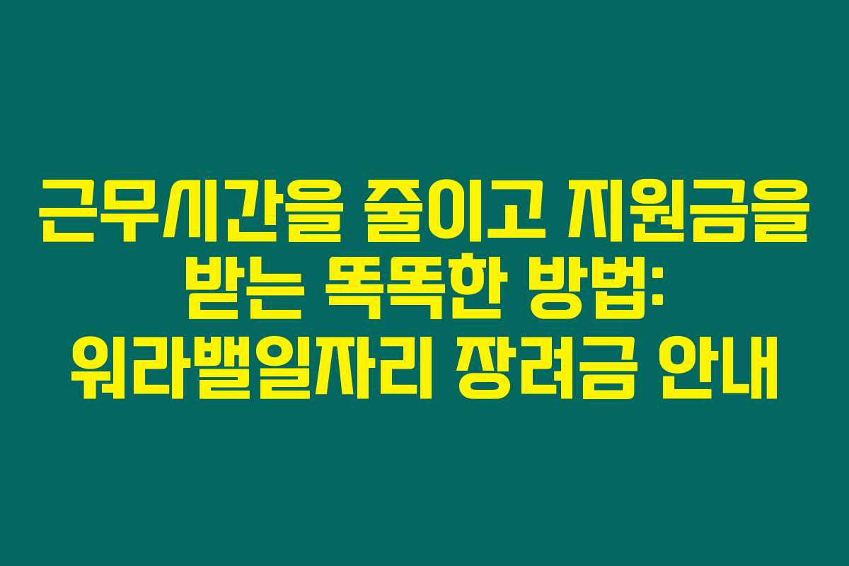 근무시간을 줄이고 지원금을 받는 똑똑한 방법: 워라밸일자리 장려금 안내
