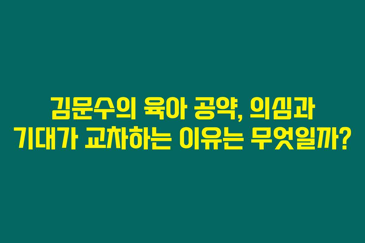 이렇게 살펴본 결과, 김문수 후보의 육아 공약은 신선한 접근이지만 실현 가능성에 대한 우려도 적지 않습니다. 여러 정책들이 무사히 실행되지 않을 경우 부모들에게 실질적인 도움을 주지 못할 수 있겠죠.