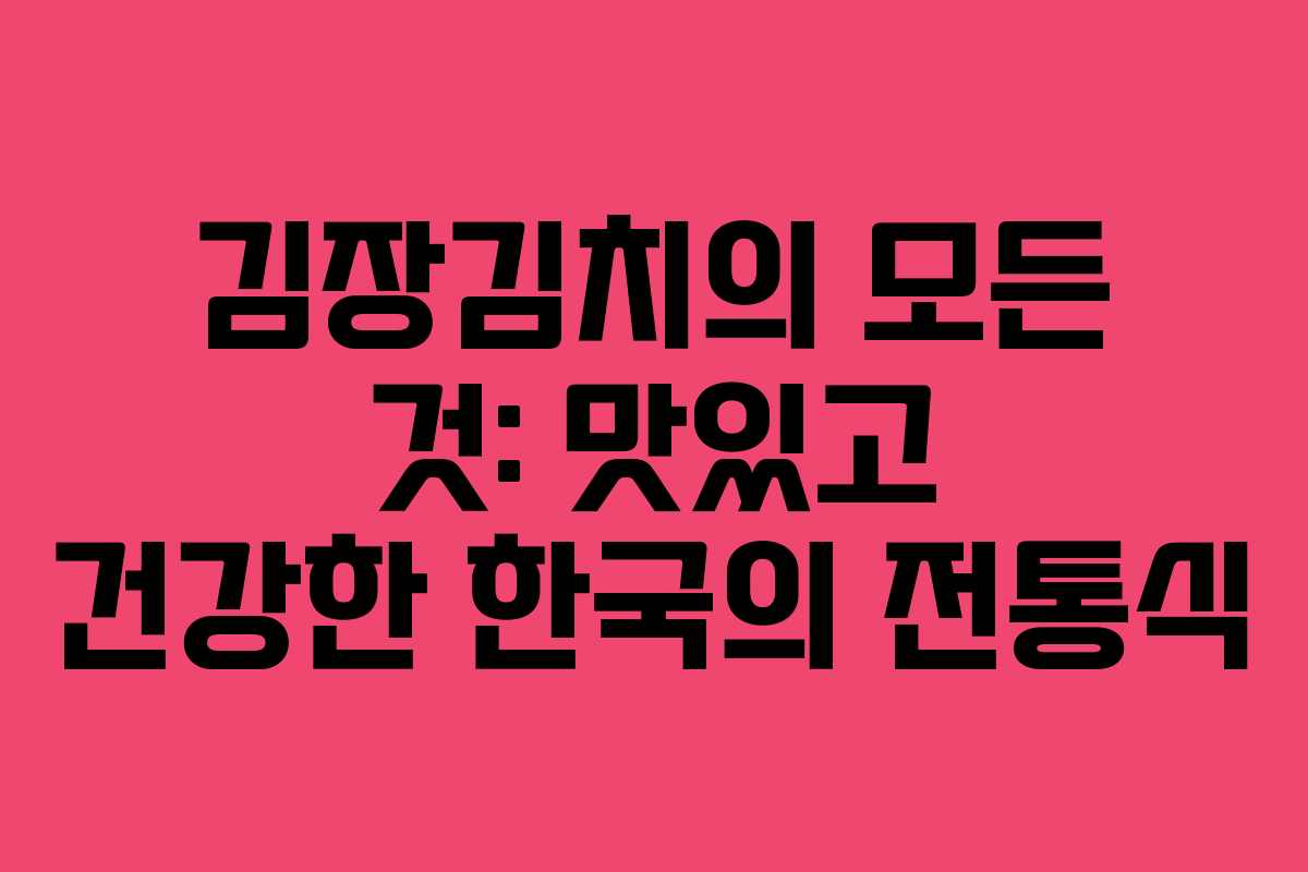 김장김치는 한국의 소중한 전통 음식으로, 그 맛과 건강 효능이 뛰어납니다. 각 가정마다 고유의 레시피가 있으니, 자신만의 김장김치를 만들어보는 것도 좋은 방법입니다. 다양한 레시피를 찾아보며 새로운 맛을 즐겨보세요!