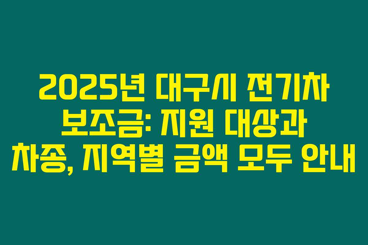 대구시의 2025년 전기차 보조금은 개인 및 법인(사업자) 모두를 대상으로 하며, 구매한 전기차는 2년 이상 보유해야 합니다. 신차 구매만 가능하며 일부 우선 지원 대상을 확인해보세요.