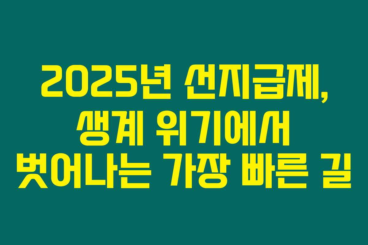 제가 알아본 바로는, 2025년 선지급제는 갑작스러운 생계 위기에 처한 저소득 가구를 위한 국가의 든든한 지원 제도입니다. 생계비를 먼저 지원받고 이후에 정밀한 심사를 받는 과정을 통해 긴급한 상황에서의 생활 안정을 도모하고 있습니다. 아래를 읽어보시면 2025년 선지급제의 조건과 신청 방법 등을 쉽게 이해하실 수 있을 거예요.
