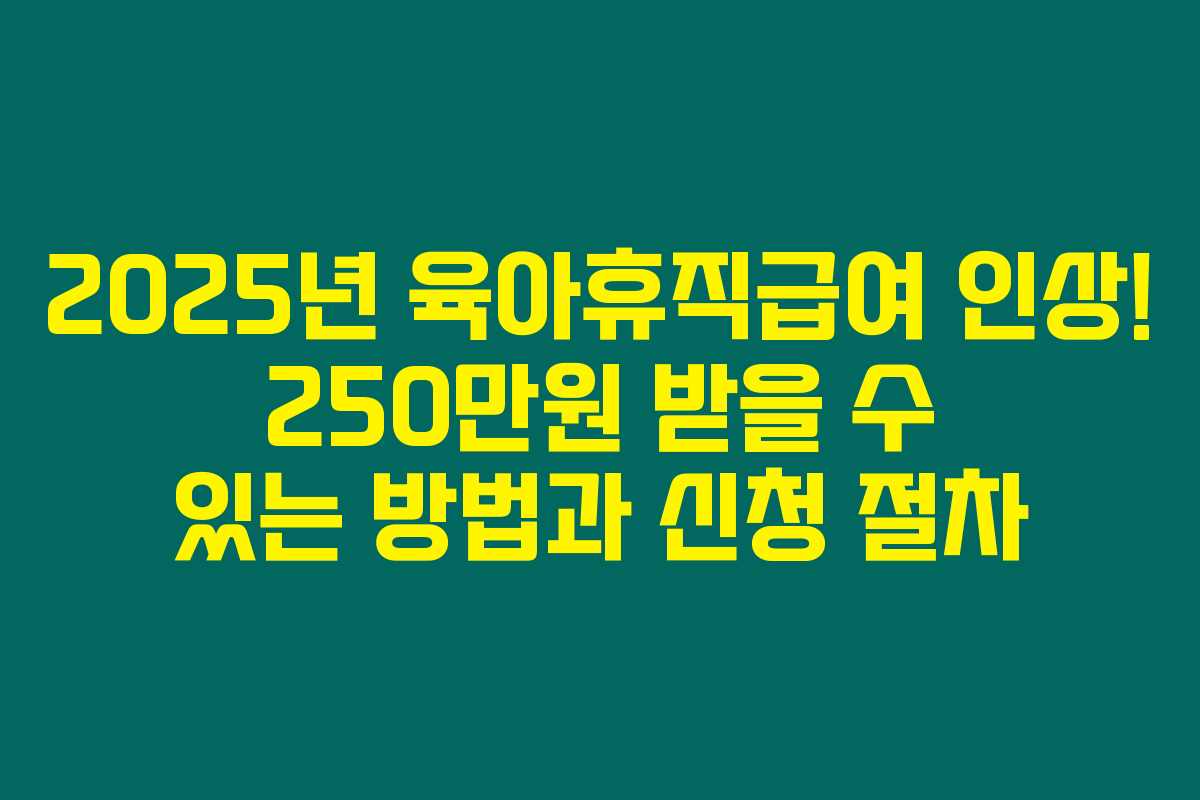 2025년부터 육아휴직급여가 인상되어 최대 250만원까지 지급될 예정입니다. 제가 조사해본 바로는, 이는 기존 150만원에서 100만원 증가한 금액으로, 많은 부모와 가정에게 큰 도움이 될 것으로 예상됩니다. 아래를 읽어보시면, 육아휴직 제도와 급여에 대해 자세히 알아보실 수 있어요.