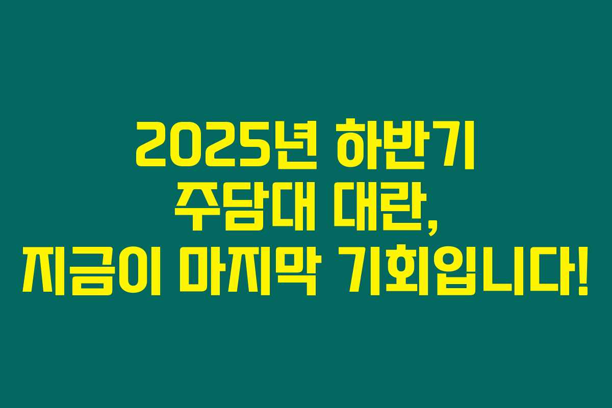 결론적으로, 2025년 7월 이후 주담대 대란이 현실화될 것으로 예상됩니다. 금융 규제가 강화되고 대출 한도가 줄어드는 만큼, 여러분도 필요한 대출을 미리 신청해 두는 것이 좋겠어요. 7월 이전에 반드시 대출을 실행하여 내 집 마련의 꿈을 이루시기 바랍니다.