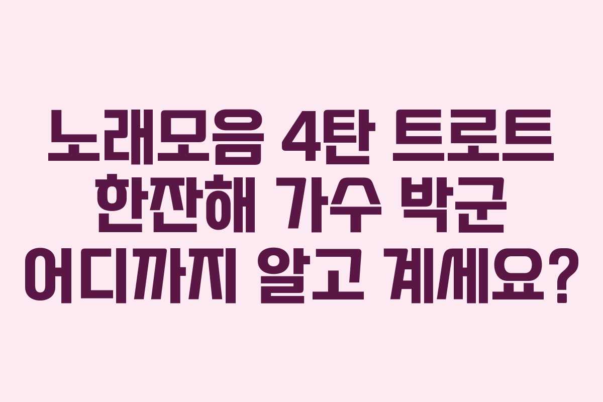 아래를 읽어보시면 박군의 데뷔 이야기와 대표곡인 한잔해를 둘러싼 비하인드, 그리고 트로트 세계에서의 진짜 매력이 무엇인지 알 수 있습니다 거친 군 경력과 음악이 만난 독특한 카리스마를 함께 살펴보면 팬으로서 이해가 훨씬 깊어질 거예요
