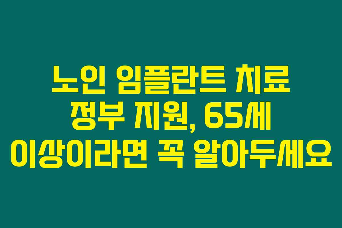 제가 알아본 바로는, 임플란트 치료에 대한 정부 지원이 만 65세 이상 어르신들에게 정말 중요한 혜택 중 하나라는 것을 느꼈어요. 이 지원 제도는 건강보험에 가입한 모든 어르신들에게 열려 있어서, 노후에 치아 건강이 매우 중요하다는 사실을 재확인했습니다. 아래를 읽어보시면 이 혜택의 상세 내용과 유의사항을 알 수 있습니다.