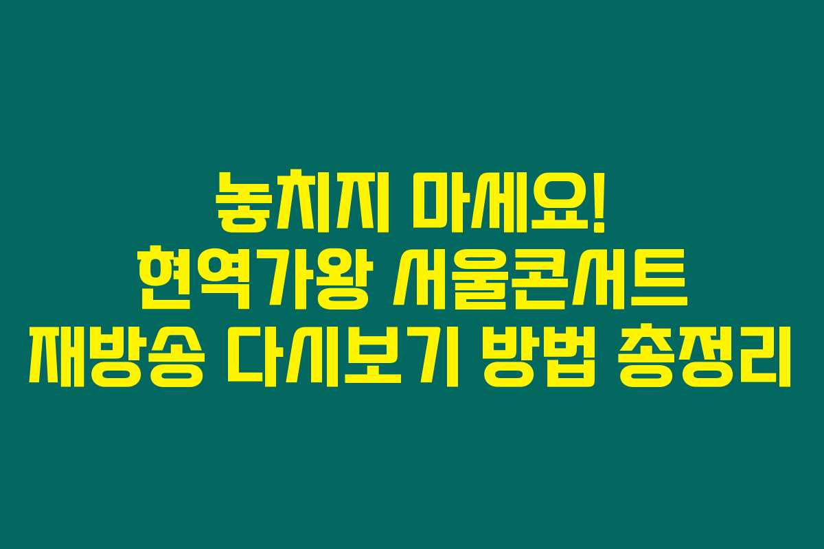 현역가왕 서울콘서트를 놓치셨나요? 그러면 지금 바로 확인해야 할 방법들이 있어요. 많은 분들이 시청을 놓쳐서 아쉬워하는데요, 아래를 읽어보시면 무료로 간편하게 서울콘서트를 다시 볼 수 있는 모든 방법을 소개해 드릴게요. 정말 쉽게 시청할 수 있는 방법도 있으니까 기대해 주세요!