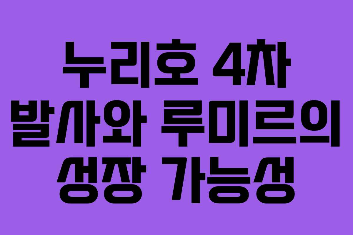 2023년 11월 중 누리호 4차 발사가 예정되어 있어, 이에 따라 이재명 정부의 우주산업에 대한 투자 확대 기대감이 커지고 있습니다. 이 발사는 한국의 우주 개발 능력을 한층 더 발전시킬 것으로 예상되며, 관련 기업인 루미르에도 긍정적인 영향을 미칠 것으로 보입니다.