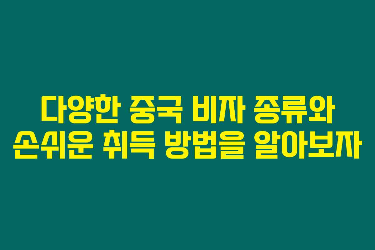 중국 비자는 목적에 따라 여러 가지 종류가 있습니다. 어떤 비자를 선택해야 할지 고민이 되시죠? 여기 각 비자의 특징을 상세히 배워보세요.