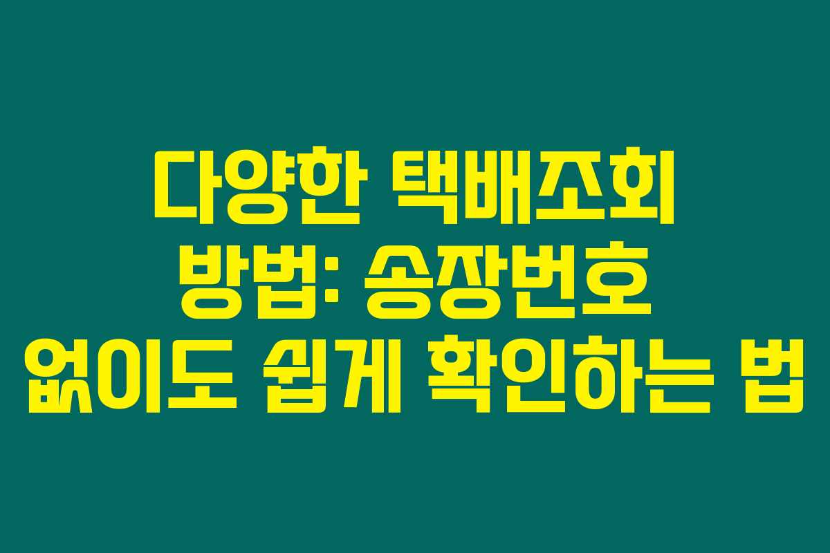 택배가 언제 도착할지 궁금할 때, 여러분도 저처럼 배송 상황을 자주 확인하실 텐데요. 요즘은 택배 배송이 일반화되면서 여러 가지 방법으로 택배조회를 하는 것이 점점 쉬워졌습니다. 아래를 읽어보시면, 전화번호, 송장번호 없이도 택배를 어떻게 조회할 수 있는지에 대한 다양한 방법을 알게 될 거예요.