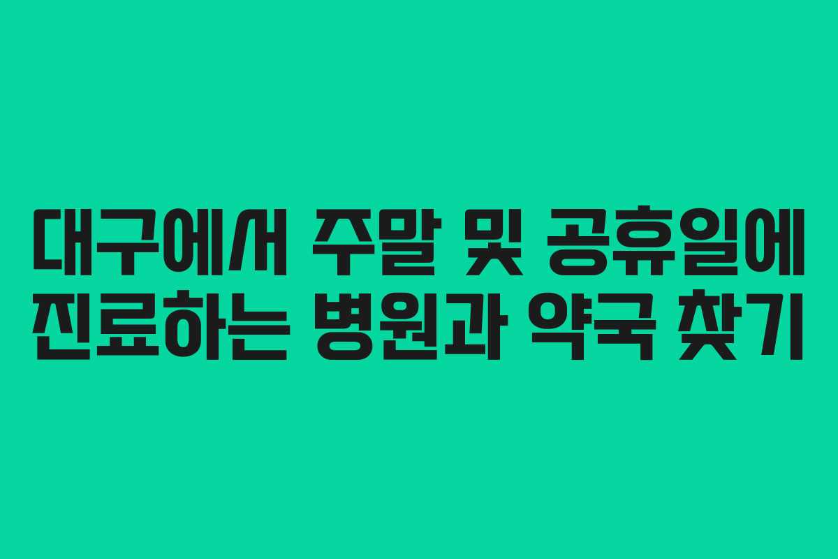 아프면 언제 어디서나 병원에 가야 하는 상황이 발생할 수 있습니다. 평일의 경우 가까운 병원에서 진료를 받을 수 있지만, 주말이나 공휴일에는 병원 찾기가 어려워질 수 있습니다. 특히 적절한 진료를 받기 위해서는 어떻게 해야 할까요? 대구 지역에서 주말 및 공휴일에 진료하는 병원과 약국을 찾는 방법에 대해 알아보겠습니다.