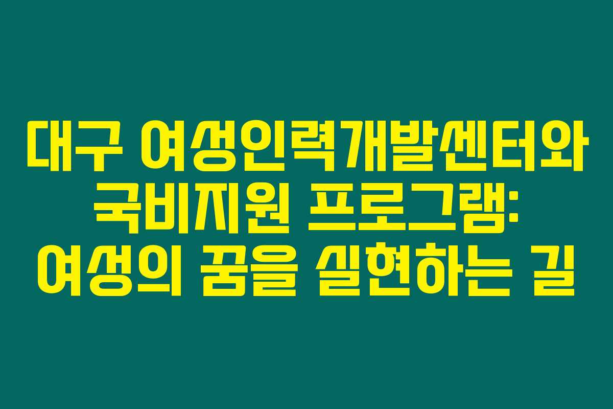 대구 여성인력개발센터와 여러 국비지원 프로그램은 여성들에게 정말 중요한 기회를 제공하고 있어요. 다양한 프로그램을 통해 여러분도 꿈을 이뤄보셨으면 좋겠어요. 필요할 때 언제든지 이 센터를 방문해보세요!