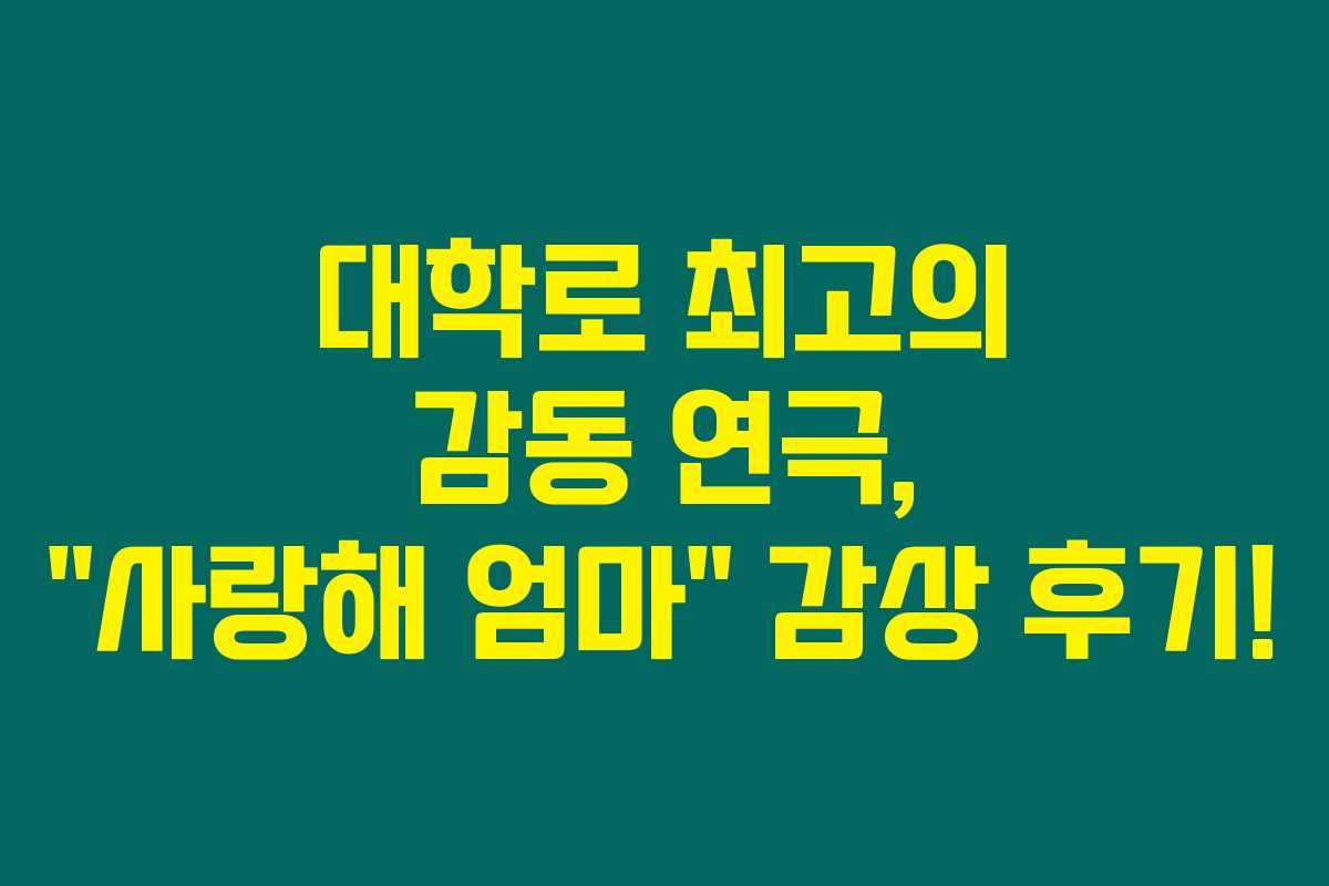 “사랑해 엄마”는 단순히 눈물만 짜내는 연극이 아닙니다. 이 작품을 통해 가족의 소중함을 다시 되새길 수 있는 기회가 되길 바랍니다. 시간이 아깝지 않을 만큼 따뜻해지는 경험을 원하신다면 꼭 관람해보세요!