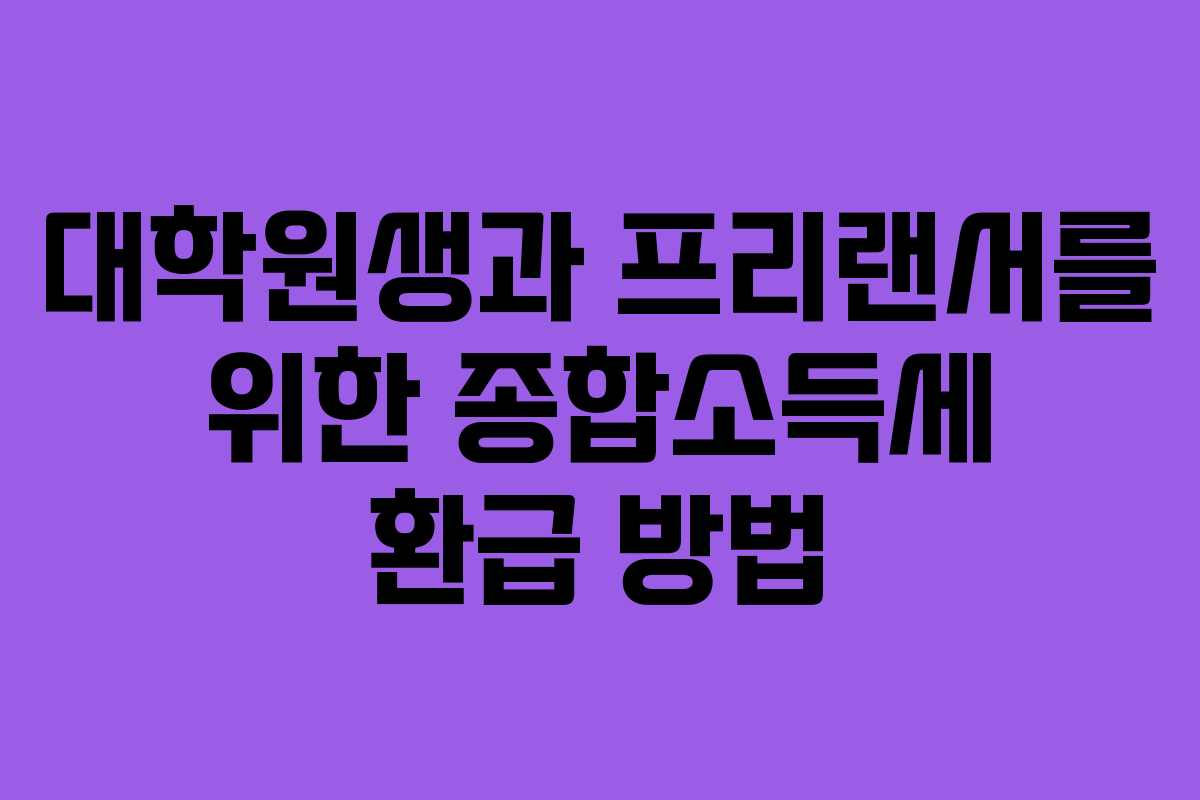 많은 대학원생, 알바, 프리랜서들이 종합소득세 환급에 대해 잘 모르고 있습니다. 하지만 이들은 연중 언제든지 환급을 받을 수 있는 권리가 있습니다. 이 글에서는 종합소득세 환급 방법을 쉽게 이해하고 활용할 수 있도록 도와드리겠습니다.