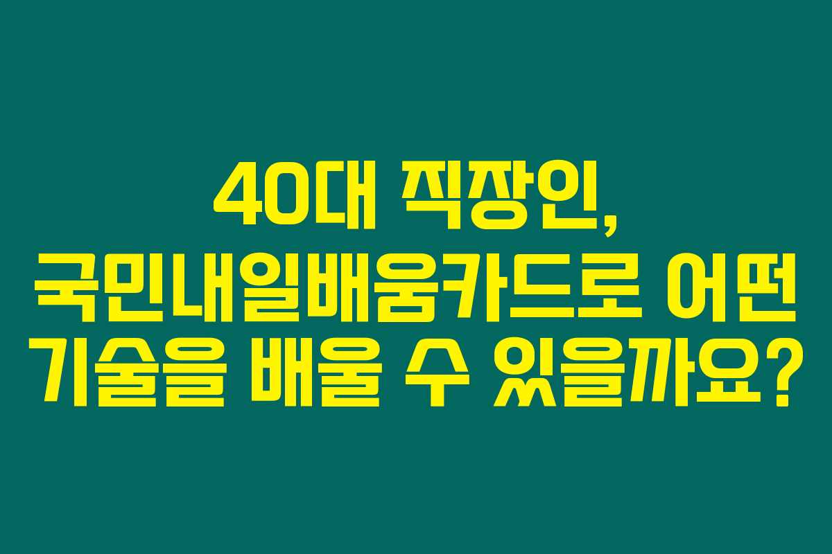 국민내일배움카드는 직장인들이 직무 능력을 향상시키거나 새로운 기술을 배울 수 있도록 국가에서 지원하는 교육 프로그램이에요. 여기에는 자격증 취득, 기술 습득 등을 위한 다양한 교육 과정이 포함됩니다. 특히 40대 직장인들에게는 자기계발의 좋은 기회가 될 수 있답니다.