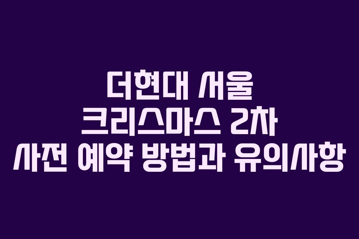연말이 다가오면 많은 이들이 기다리는 더현대 서울 크리스마스 빌리지가 돌아왔습니다. 1차 예약은 이미 마감되었지만, 2차 사전 예약이 곧 시작됩니다. 이번 글에서는 예약 방법, 대기 등록, 입장 시 유의사항 등을 자세히 안내 드리겠습니다.