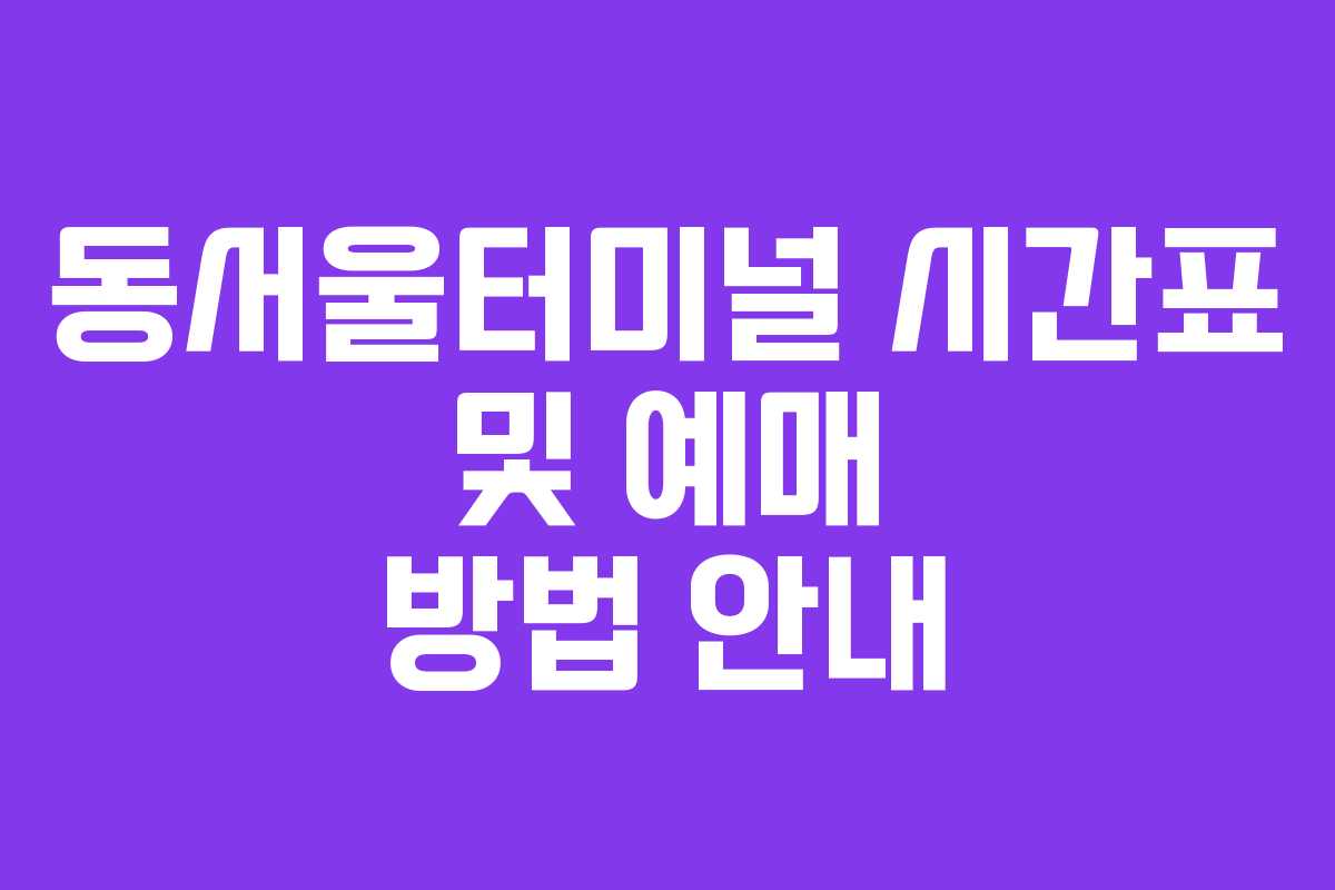 서울은 많은 사람들이 오가는 주요 도시로, 그중에서도 동서울터미널은 시외 및 고속버스를 이용하는 이들에게 필수적인 장소입니다. 이번 포스팅에서는 동서울터미널의 시간표와 예매 방법에 대해 알아보도록 하겠습니다.