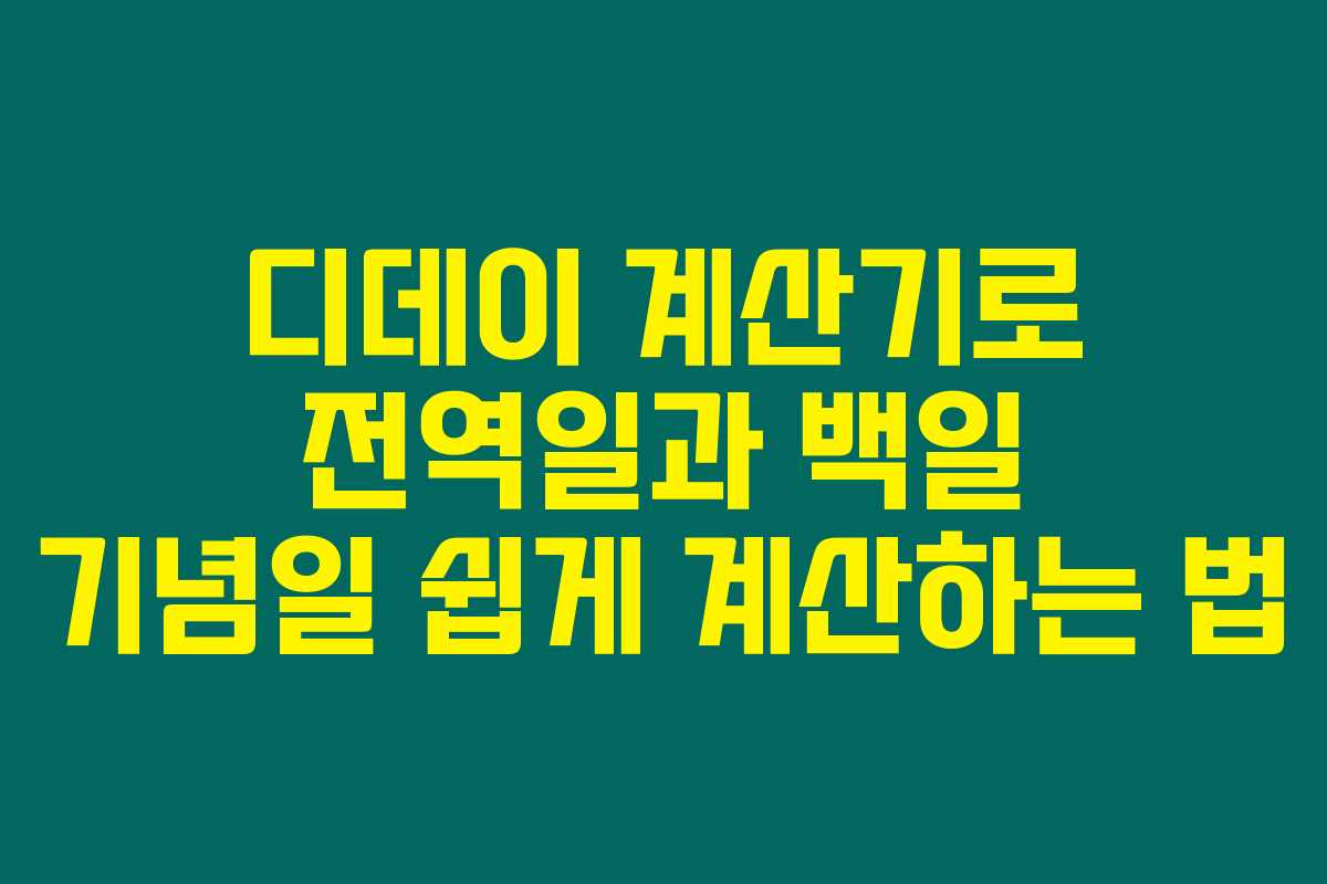디데이 계산기로 전역일을 계산하려고 하시나요? 만약 군대에 계신 남자친구가 있다면 그 전역일이 언제인지 궁금할 수 있죠. 혹은 커플로서의 백일 기념일을 기억하고 싶으신가요? 그렇다면 아래를 읽어보시면 디데이 계산기가 얼마나 유용한 도구인지 알게 되실 거에요!
