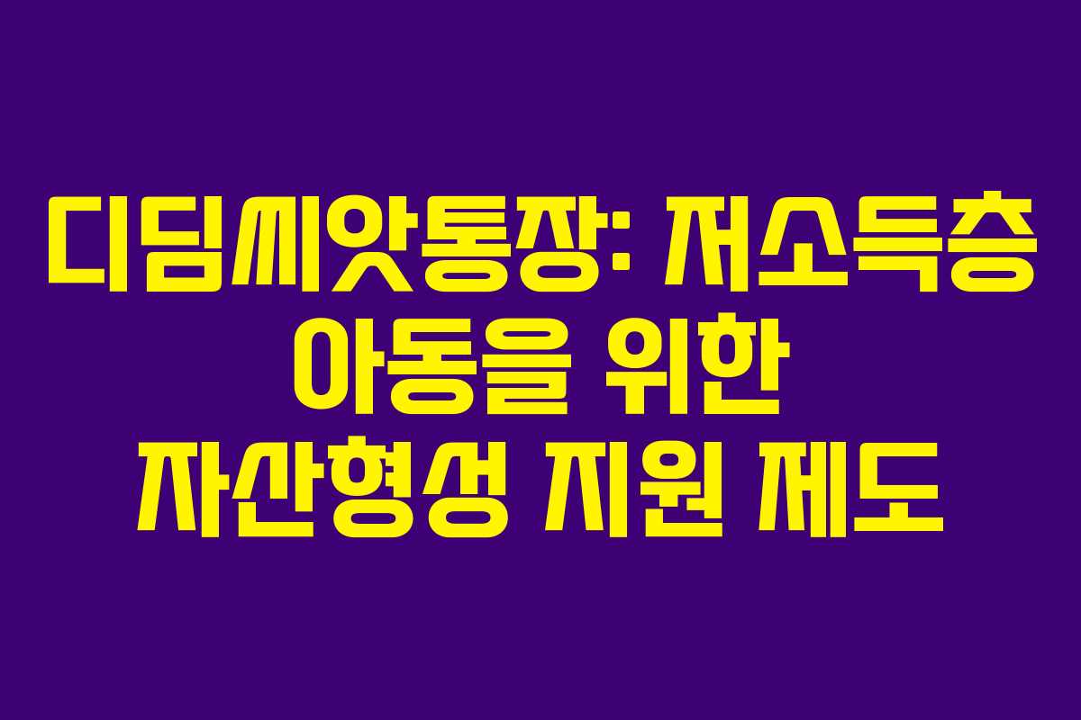 디딤씨앗통장은 저소득층 아동의 사회 진출을 지원하기 위해 정부에서 운영하는 자산형성 프로그램입니다. 이 제도는 아동이 자립할 수 있도록 초기 비용을 마련할 수 있게 도와줍니다.