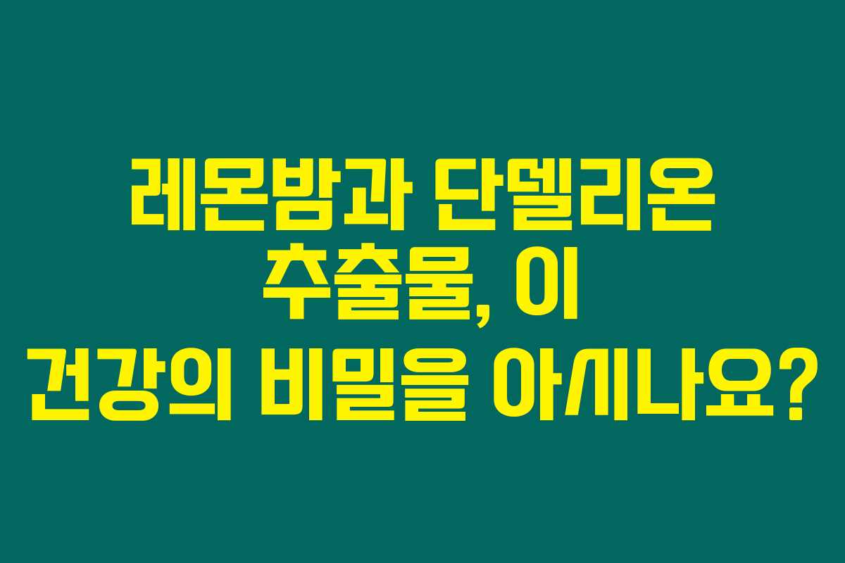레몬밤 단델리온 추출물이 건강을 위해 무척이나 유익한 선택이 될 수 있다는 사실을 알고 계신가요? 해당 추출물을 섭취할 때의 효능부터 부작용, 그리고 올바른 복용 방법까지, 아래를 읽어보시면 많은 도움이 될 거예요.