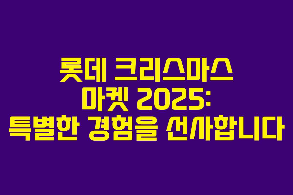 롯데 크리스마스 마켓 2025: 특별한 경험을 선사합니다