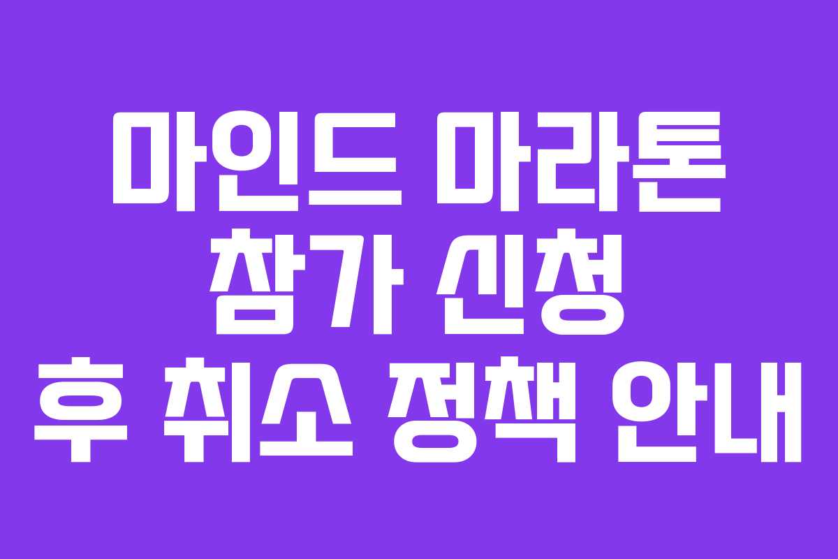 마인드 마라톤은 최근 많은 관심을 받고 있는 이벤트로, 정신적 도전과 성장을 위한 기회를 제공합니다. 많은 사람들이 이 행사에 참여하기 위해 신청하고 있지만, 그 과정에서 취소 정책에 대한 궁금증이 생길 수 있습니다. 이번 글에서는 마인드 마라톤의 참가 신청 후 취소 정책을 상세히 안내해 드리겠습니다.