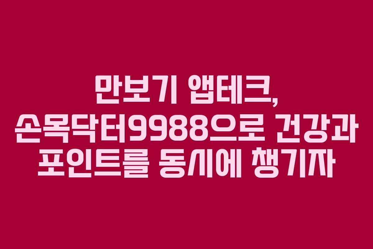 요즘 많은 사람들이 건강을 챙기기 위해 걷기 운동을 시작하고 있습니다. 그 중에서도 손목닥터9988은 걷기 운동을 통해 포인트를 적립할 수 있는 앱으로 주목받고 있습니다. 이 앱을 통해 어떻게 포인트를 쌓고 현금으로 전환할 수 있는지 알아보겠습니다.