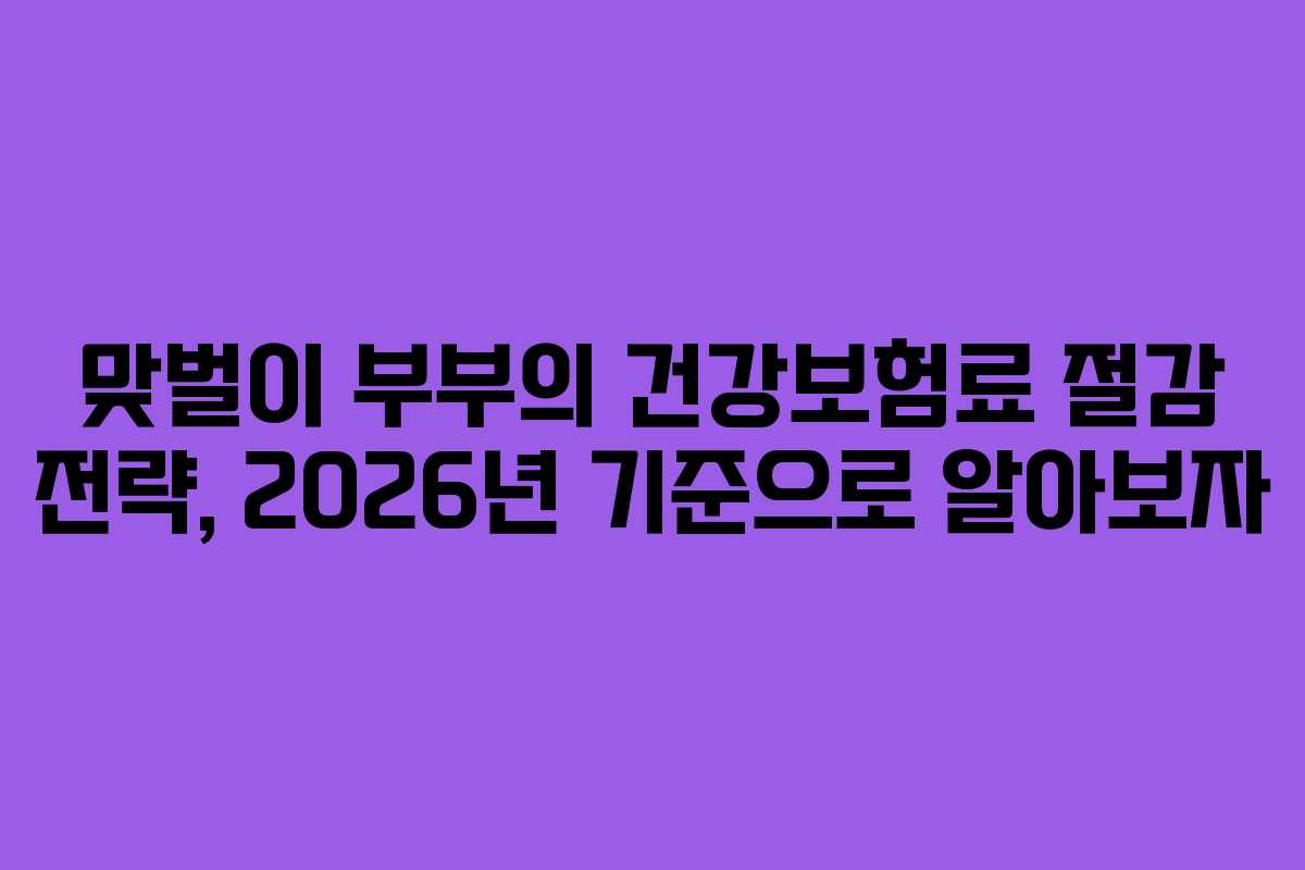맞벌이 부부의 건강보험료 절감 전략, 2026년 기준으로 알아보자