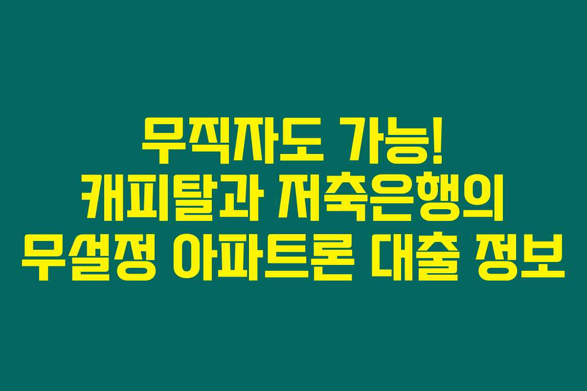 이번 포스팅을 통해 캐피탈과 저축은행의 무설정 아파트론 대출 상품에 대한 정보를 드렸어요. 무직자라도 다양한 방법으로 대출을 받을 수 있으니, 성실한 계획과 준비를 통해 필요한 자금을 마련하세요.