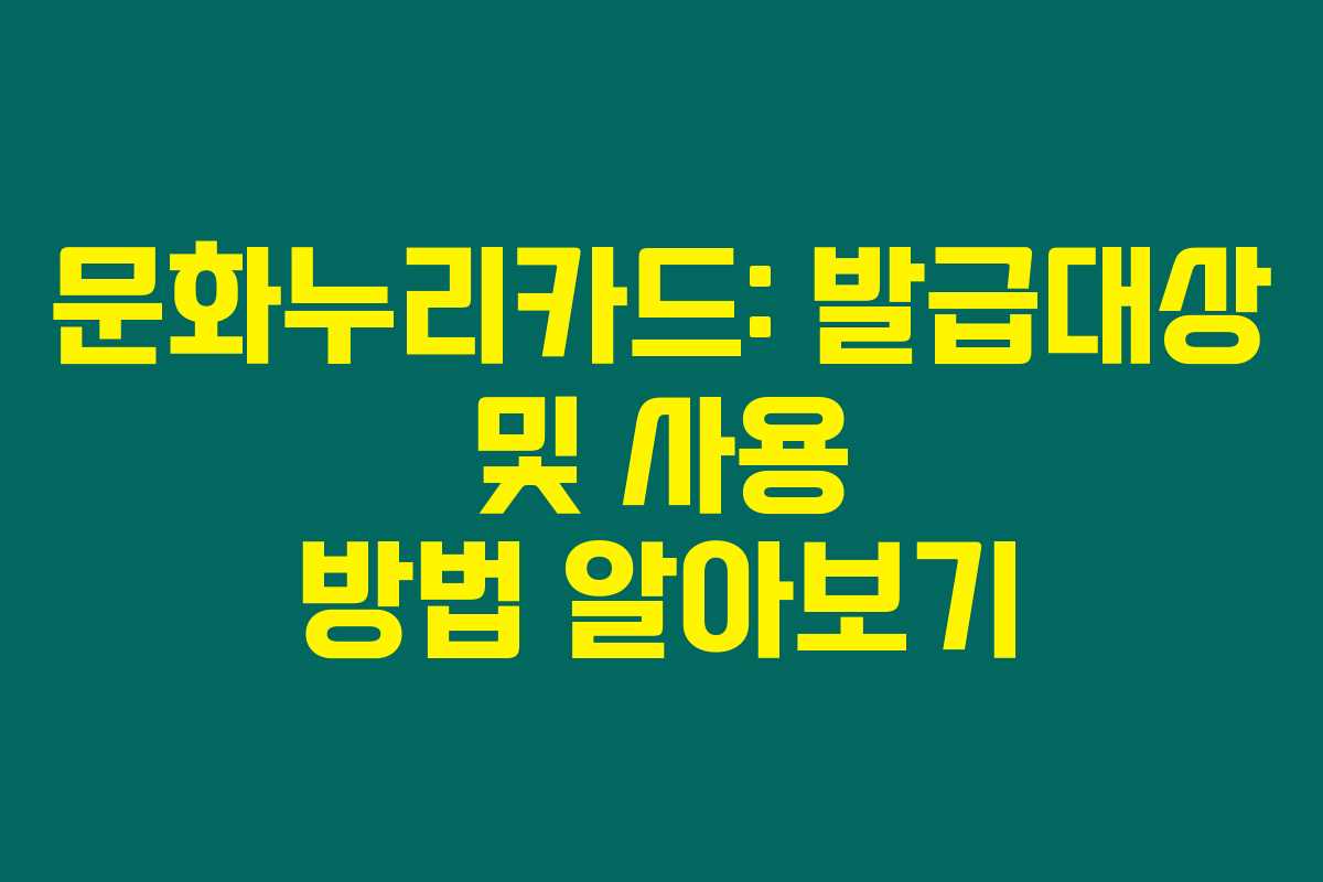 문화누리카드는 저소득층이 문화 활동을 쉽게 접근할 수 있도록 돕는 카드입니다. 하지만 많은 분들이 발급 대상이나 사용 방법에 대해 잘 모르고 계시지요? 아래를 읽어보시면 문화누리카드의 발급 조건과 사용 팁을 알게 될 거예요. 이제 문화누리카드를 통해 더 풍요로운 문화생활을 즐겨보세요!
