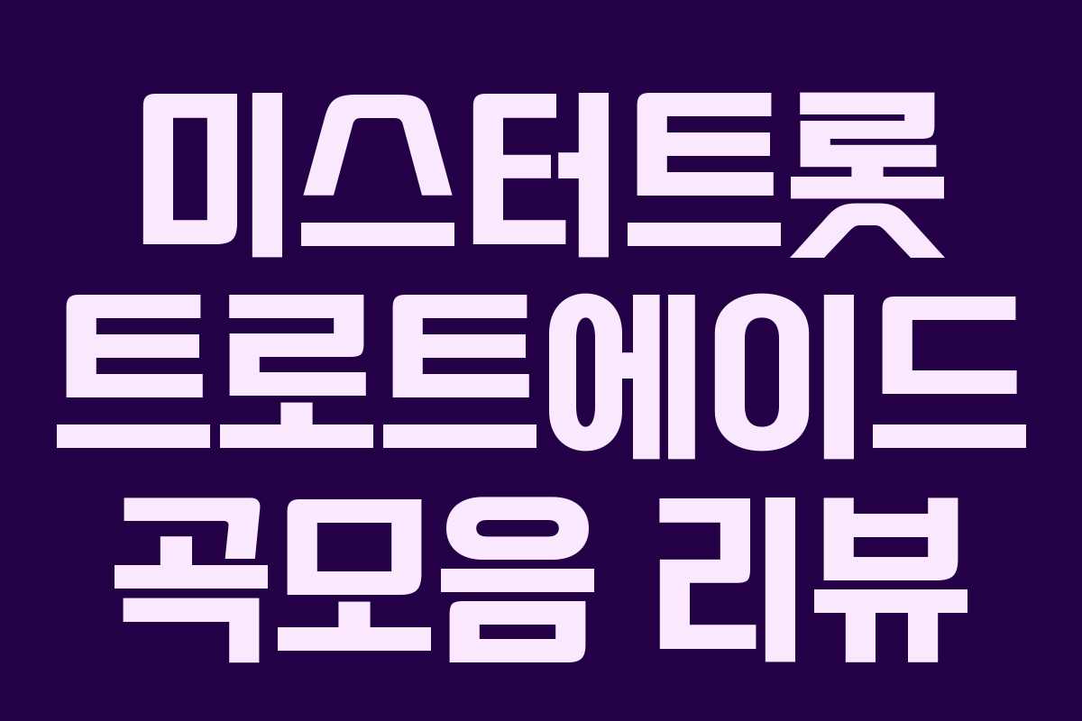 답변: 유튜브에서 “미스터트롯 트로트에이드 곡모음”을 검색하시면 쉽게 찾을 수 있습니다.