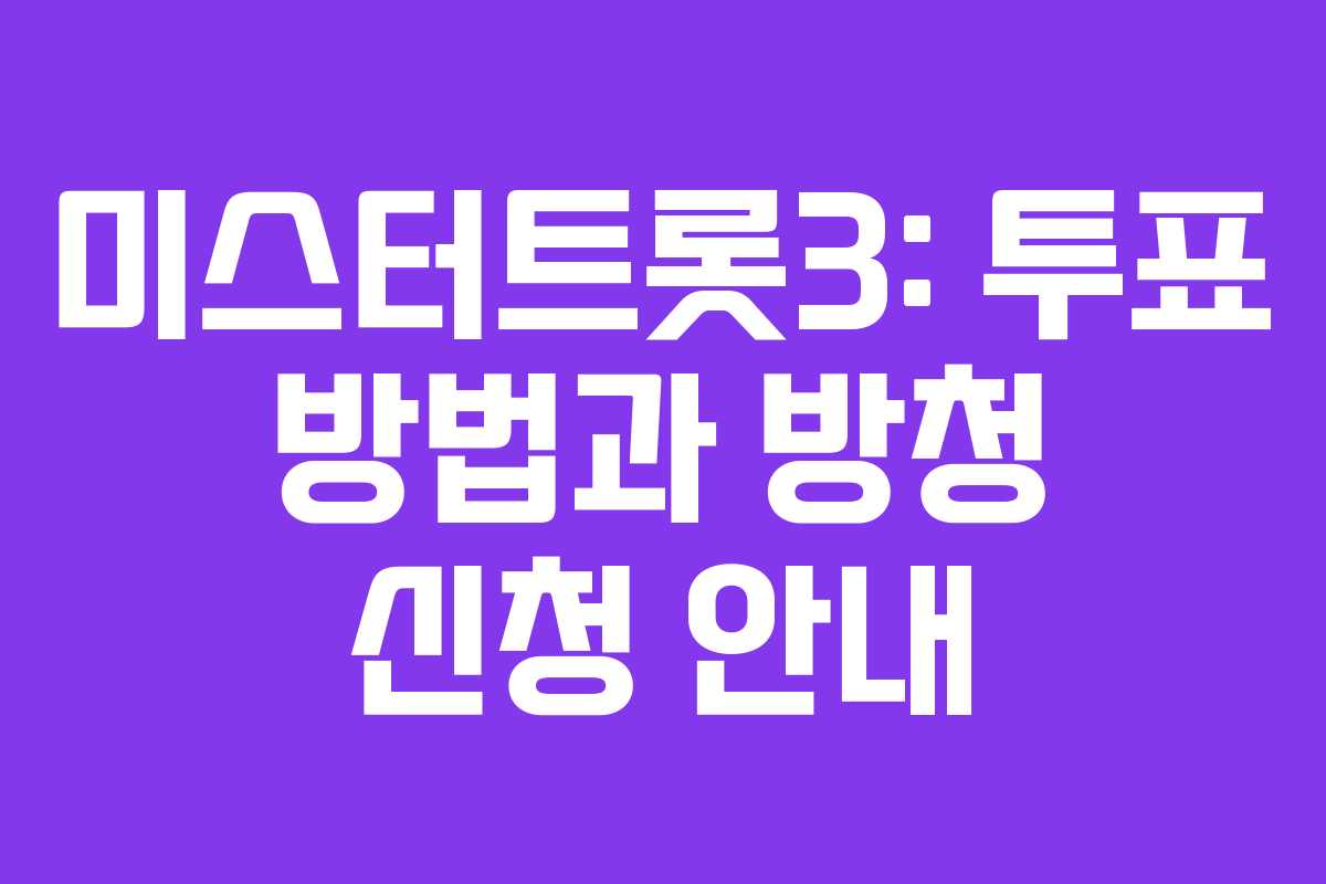 ‘미스터트롯3’는 대한민국의 인기 트로트 오디션 프로그램으로, 많은 이들의 기대를 모으고 있습니다. 이번 포스트에서는 ‘미스터트롯3’의 투표 방법, 방청 신청, 대국민 응원 문자, 결승 실시간 방송, 다시보기 등에 대한 정보를 제공하겠습니다.