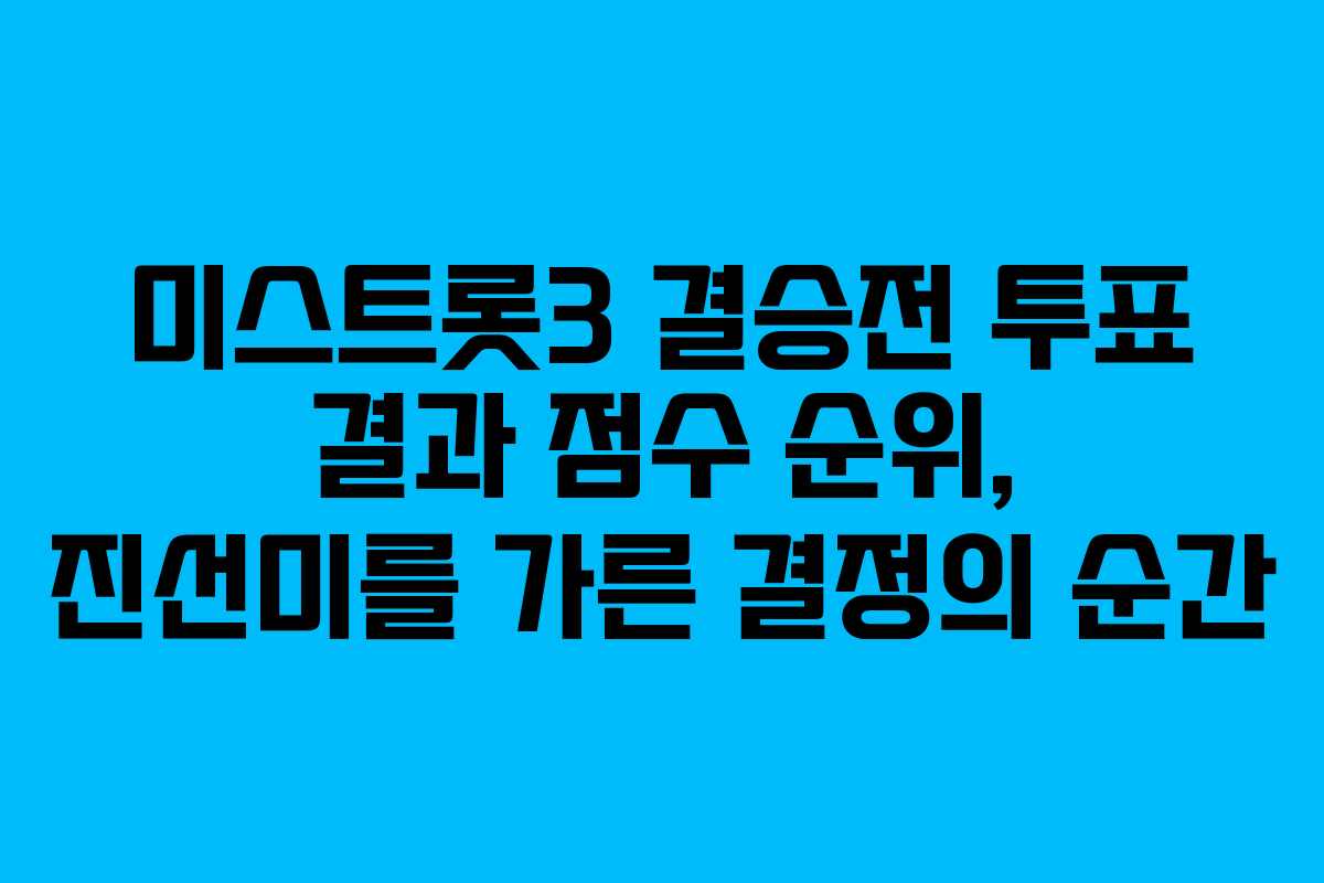 답변: 실시간 문자 투표 정보는 방송과 네이버 NOW 앱의 투표 페이지에서 확인할 수 있습니다. 이 투표 수치가 최종 점수에 반영되어 미스트롯3 결승전 투표 결과 점수 순위의 결정에 직접 작용합니다.