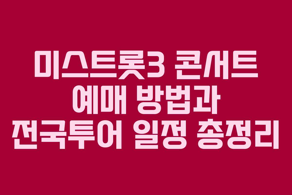 미스트롯3의 전국투어 콘서트가 드디어 시작됩니다! 많은 팬들이 기다려온 이 이벤트에 대한 티켓 예매 방법과 일정 정보를 정리해 보았습니다.
