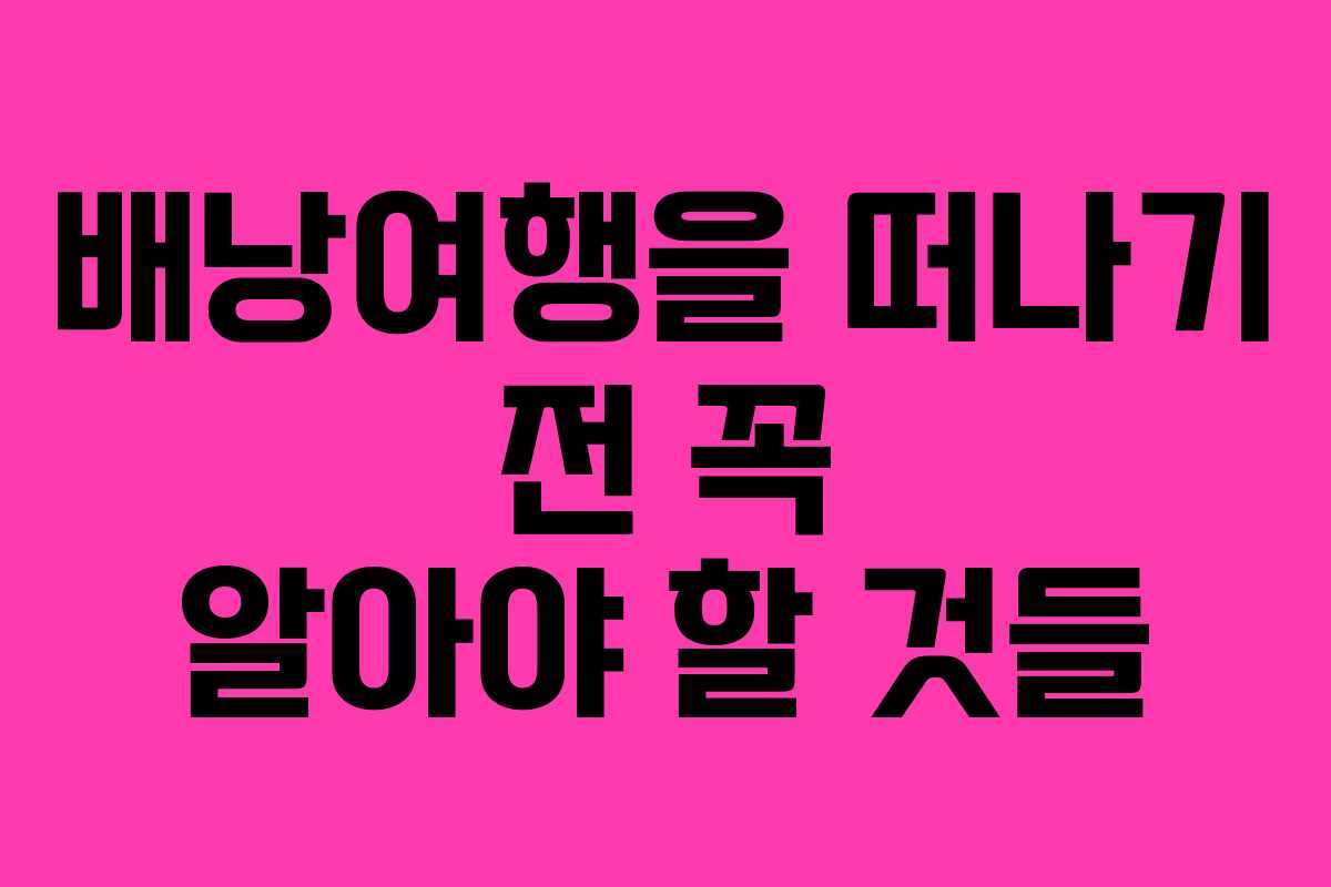배낭여행은 새로운 경험과 모험을 선사하는 특별한 여행 방식이다. 여러 나라와 문화를 경험할 수 있는 기회가 주어지며, 특히 자연을 사랑하는 사람들에게는 더욱 매력적인 선택이 될 수 있다. 하지만 미리 준비를 하지 않으면 예상치 못한 어려움에 직면할 수 있다. 이 글에서는 배낭여행을 계획하는 데 도움이 될 만한 중요한 정보와 팁을 제공하고자 한다.